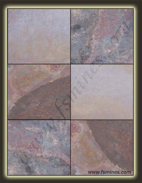 The basic colors of slate are SILVER GREY SLATE, SILVER SHINE SLATE, PEACOCK MULTY SLATE and RUSTIC AUTOMN.